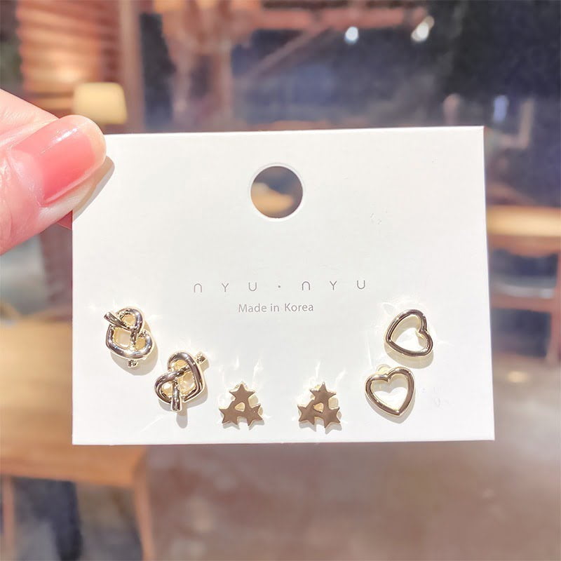 Agrega un toque de elegancia y sofisticación a tu estilo. Estos hermosos aros vienen en un blister de 3 pares con diseños únicos y femeninos que te encantarán.