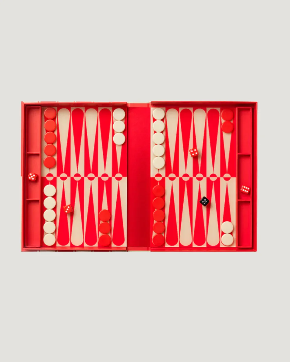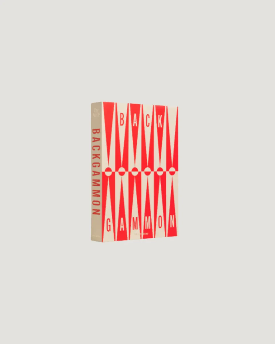 Art of Backgammon – Anthracite le da al juego clásico un giro refinado con patrones sutiles pero llamativos en negro, azul polvoriento y naranja. Diseñado para abrirse como un libro, revela un tablero acrílico elegante que invita a horas de juego estratégico.