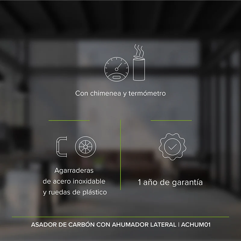 Doble Funcionalidad Versátil: Disfruta de un asador de carbón tradicional y un ahumador lateral integrado en un solo cuerpo, ideal para experimentar con diferentes técnicas de cocción.