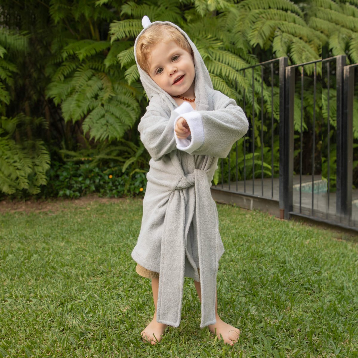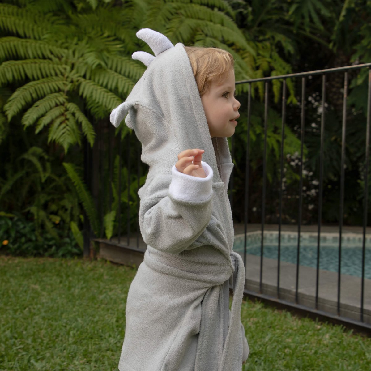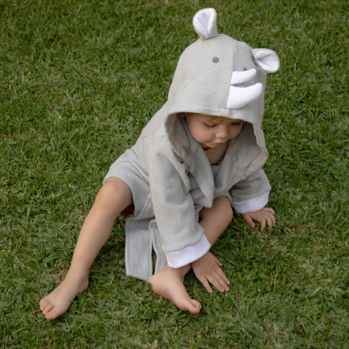 Ir la playa, alberca o tomar una ducha será más divertido ya que tu bebé se podrá secar con su animal favorito, con nuestro diseño de bata de baño para bebé Babuu Baby, hecha de toalla 100% algodón, con divertido diseño de rinoceronte gris con picos en la cara y cola de cordones gris. La capucha protege los oídos del bebé o niño del aire, al sacarlos del agua.