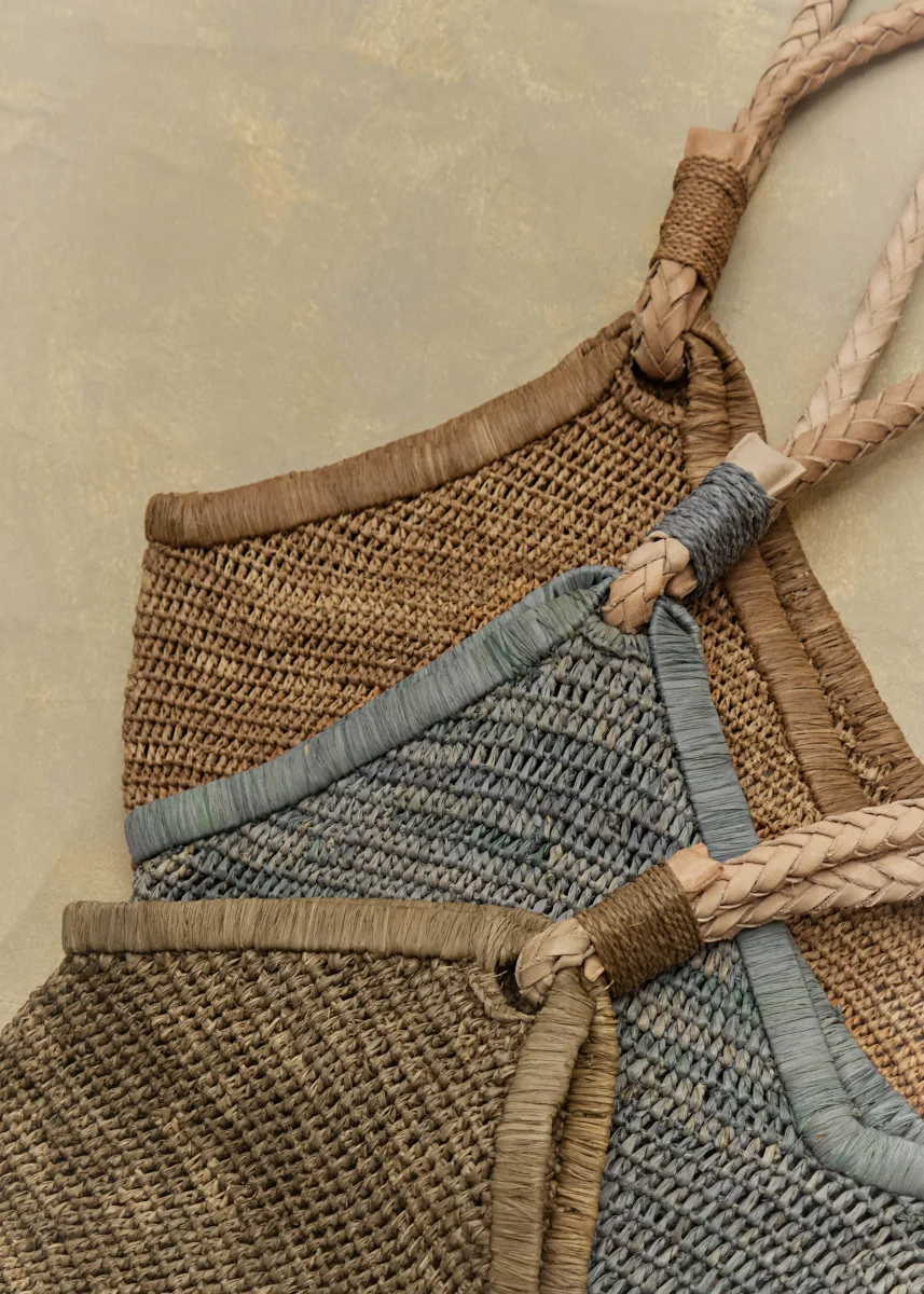 Hecho a mano y tejido con fibras de rafia resistentes y de cosecha sostenible.