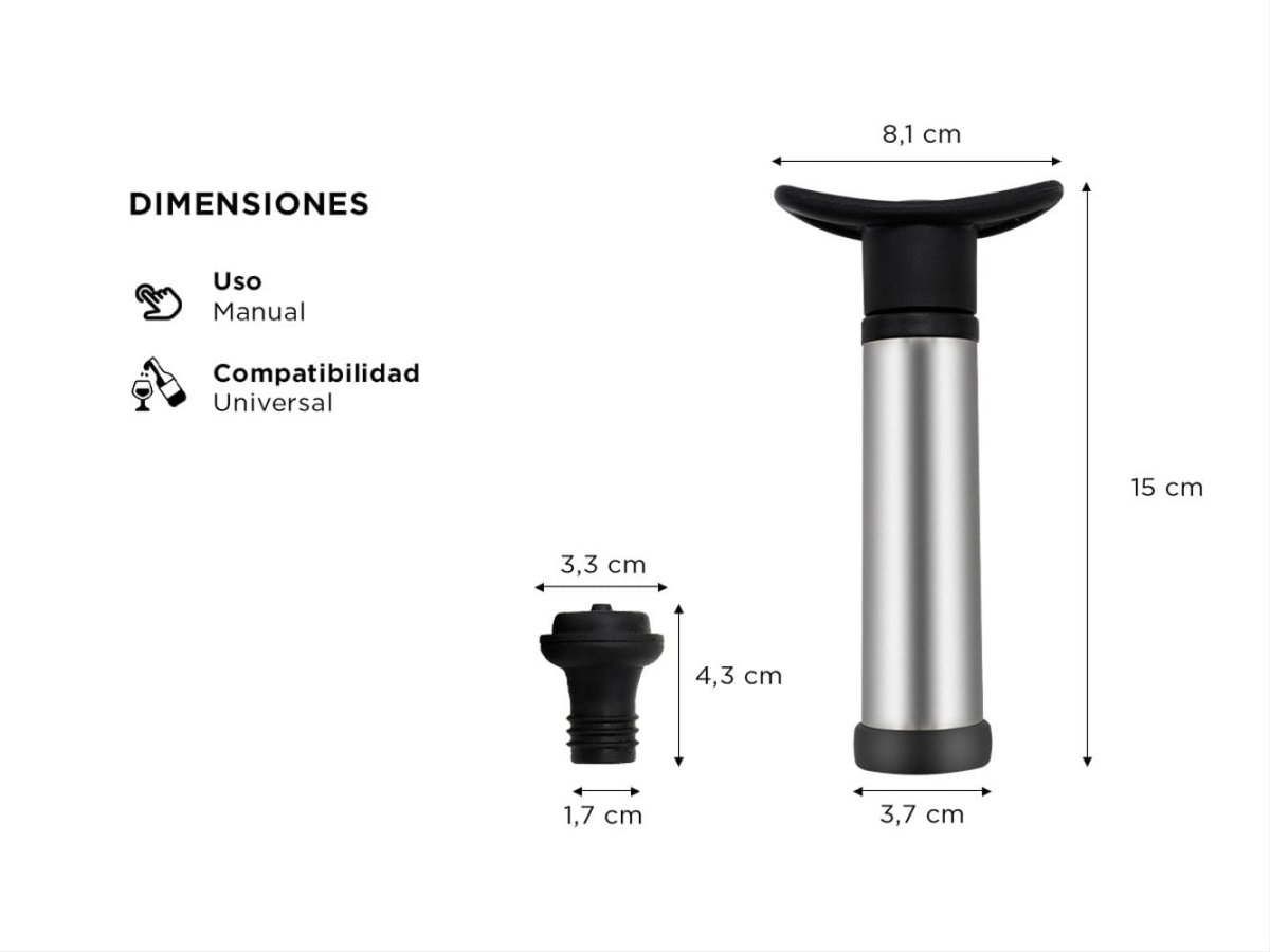 - Para obtener mejores resultados, usa la bomba de vacío dentro de las 24 horas siguientes a la apertura de la botella.