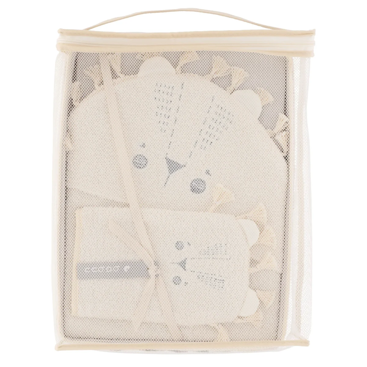 3. Manopla de león 15 x 23 cm toalla beige 100% algodón. Detalle de cara bordada en manopla y melena de león con tira de estambre en tono crudo. Ideal para enjabonar a tu bebé al mismo tiempo que juegas con la manopla como si fuera un títere de león.