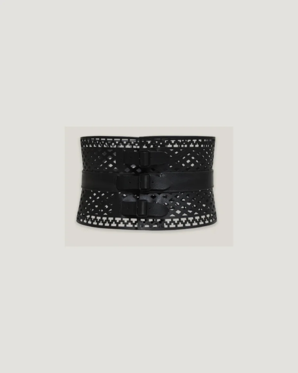 Cinturón calado tipo corsé elaborado en piel de vacuno de curtición vegetal color avellana. Hebillas ajustables para adaptarse adecuadamente a tu figura. Este vanguardista diseño toma como referencia la armonía de carruajes propios del siglo XIX, para convertirse en una pieza absolutamente contemporánea proyectada para la mujer moderna. Realizado y engastado a mano en nuestro propio taller artesano en Lebrija, España. Por su carácter artesanal, el tamaño y los acabados pueden variar ligeramente, haciendo que cada pieza sea única. Medidas mínimas del cinturón: 70 cm de cintura Medidas máximas del cinturón: 80 cm de cintura