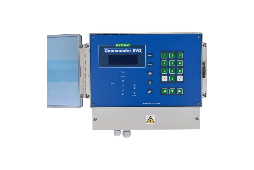 El Controlador Commander EVO Gold ha sido diseñado para cubrir las necesidades de automatización de riego en sistemas medianos y grandes. Su arquitectura modular permite gestionar múltiples estaciones, haciendo posible un control eficiente, preciso y completamente programable del riego.