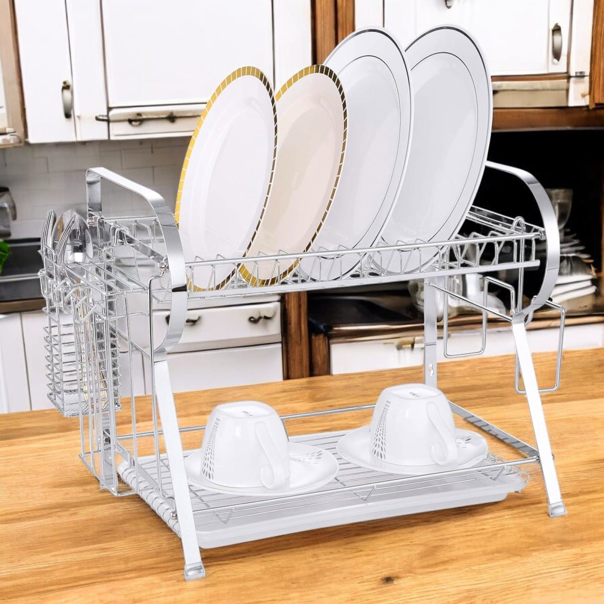 Escurridor de Platos Premium 2 Niveles de Acero Inoxidable con Bandeja | Organizador de Cocina Multifuncional