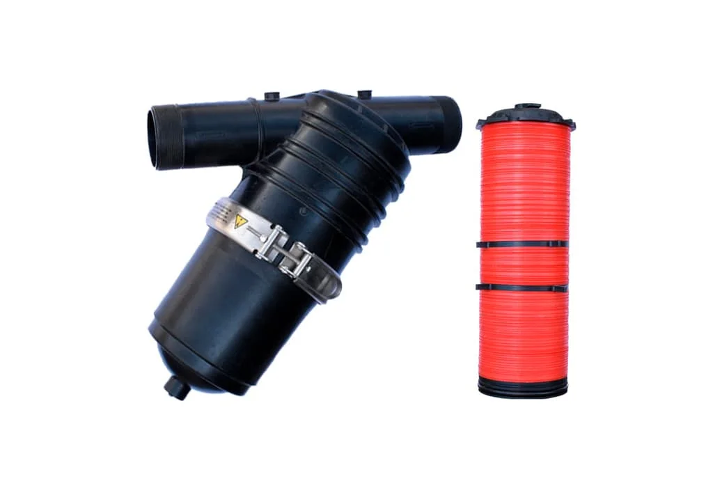 Fabricado en PVC reforzado o nylon con fibra de vidrio, este filtro resiste presión, químicos y radiación UV. Su tapa suele incluir bridas o empalmes estándar, facilitando la instalación en cualquier sistema de riego.