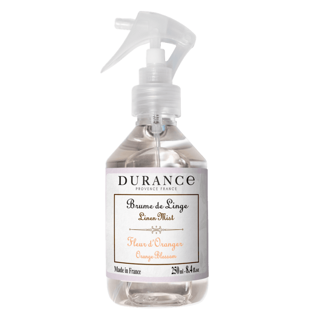 Bruma textil Fleur d’Oranger de la firma Durance. Un perfume especialmente formulado para cuidar de los tejidos de nuestro hogar, aromatizándolos y creando un ambiente fresco y limpio.