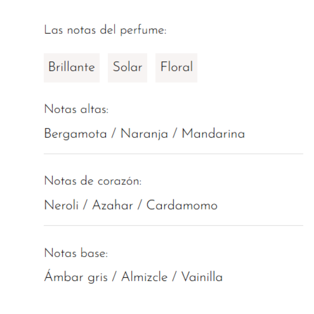 Creado por maestros perfumistas franceses y con una experiencia a sus espaldas de más de 30 años. Aromas auténticos extraídos de la naturaleza y que, gracias al amor por los materiales más refinados, prestan especial atención a la composición de sus productos, favoreciendo el uso de ingredientes de origen natural y materias primas respetuosas de reconocido prestigio.