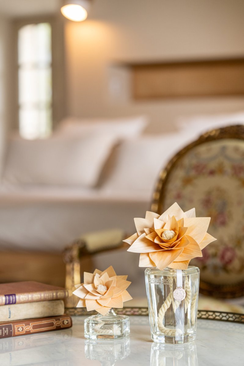 Podrás darle uso eternamente gracias a su recambio de mikado Flor de Algodón de Durance y al recambio de su flor de madera grande.