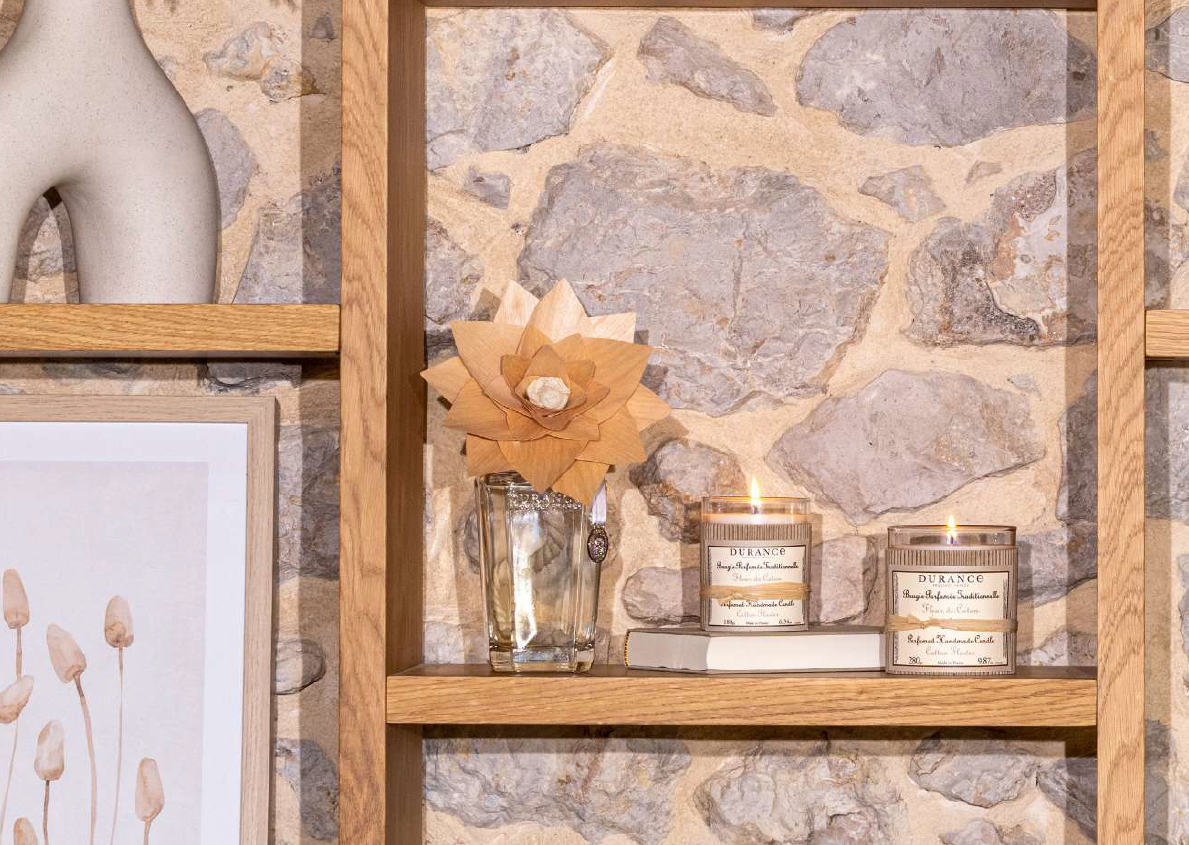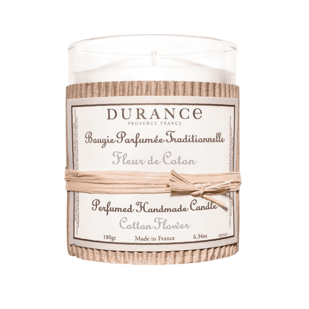 Esta vela perfumada Flor de Algodón -180 gr de Durance, de fragancia suave por la flor de algodón y limpia por notas almizcladas, difunde su perfume de manera óptima, intensa e inmediata, creando un ambiente muy agradable.