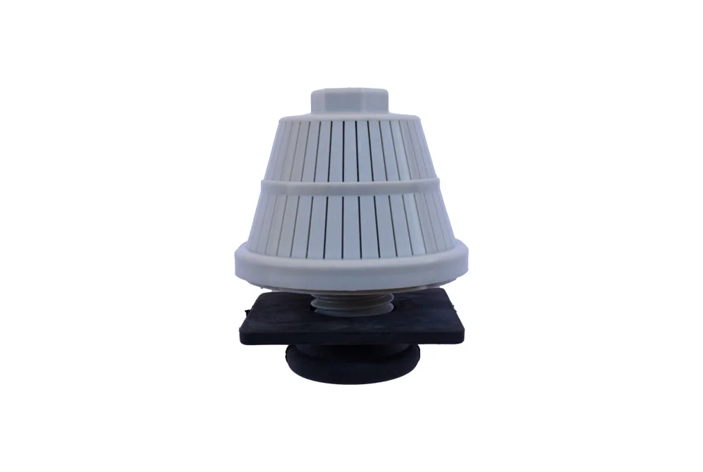 Fabricado en materiales plásticos de alta resistencia, este accesorio soporta condiciones exigentes de presión y caudal. Su forma tipo «hongo» permite una distribución simétrica del flujo y mejora el rendimiento del sistema al evitar el paso de sedimentos al resto de la red.
