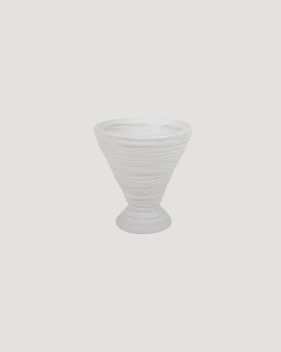 Jarrón de cerámica en espiral. Disponible en dos colores y tamaños, realza arreglos florales de todo tipo.