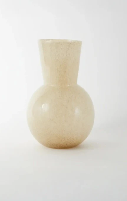 Jarrón de vidrio color arena. Es ideal de decoración con o sin flores.