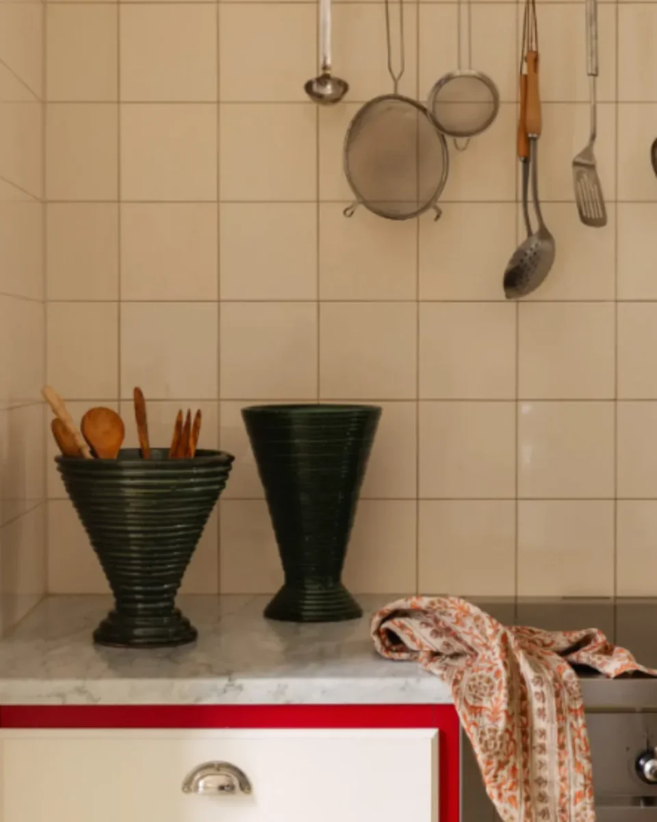 Jarrón de cerámica en espiral. Disponible en dos colores y tamaños, realza arreglos florales de todo tipo.