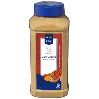 El jengibre molido Metro Chef es una especia aromática de alta calidad elaborada a partir de raíces de jengibre (Zingiber officinale) cuidadosamente seleccionadas, deshidratadas y molidas finamente para preservar todo su sabor, aroma y propiedades naturales. Este producto ofrece una forma práctica y duradera de incorporar el distintivo perfil especiado, cálido y ligeramente picante del jengibre en todo tipo de preparaciones culinarias.