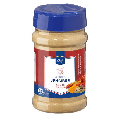De color beige claro y textura suave, el jengibre molido de Metro Chef destaca por su pureza y potencia aromática. Su sabor es penetrante, con notas cítricas, terrosas y un toque picante, ideal tanto para platos dulces como salados. Se integra fácilmente en mezclas de especias, marinados, masas, bebidas calientes, sopas, curris, postres, galletas y salsas, brindando profundidad y un toque exótico a las recetas.