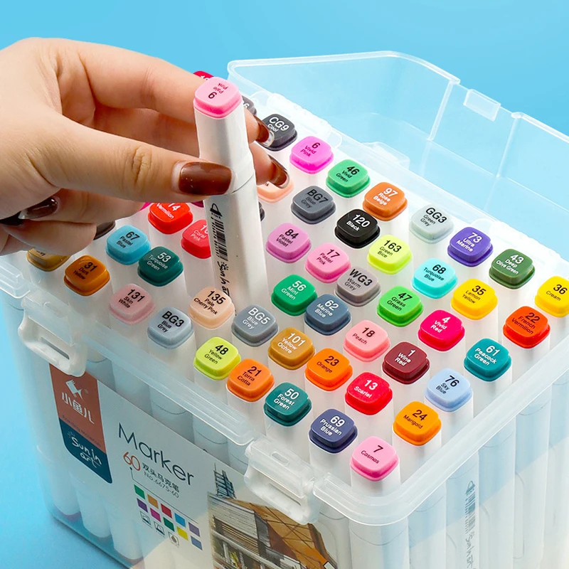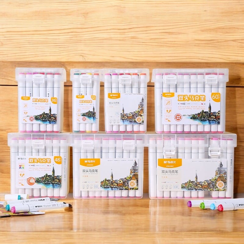 Kit Marcadores Doble Punta A Base De Alcohol Con Caja