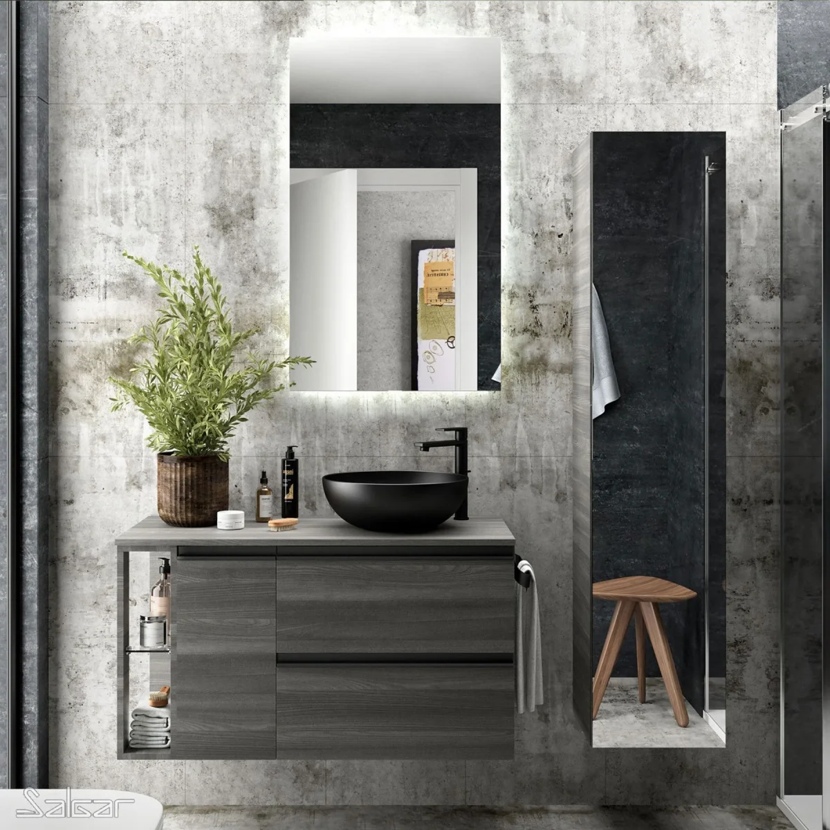 -Lavabo de posar fabricado en porcelana negra mate.