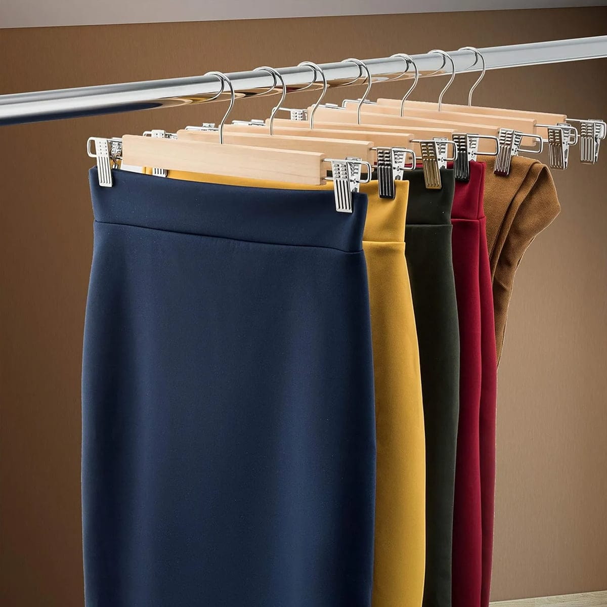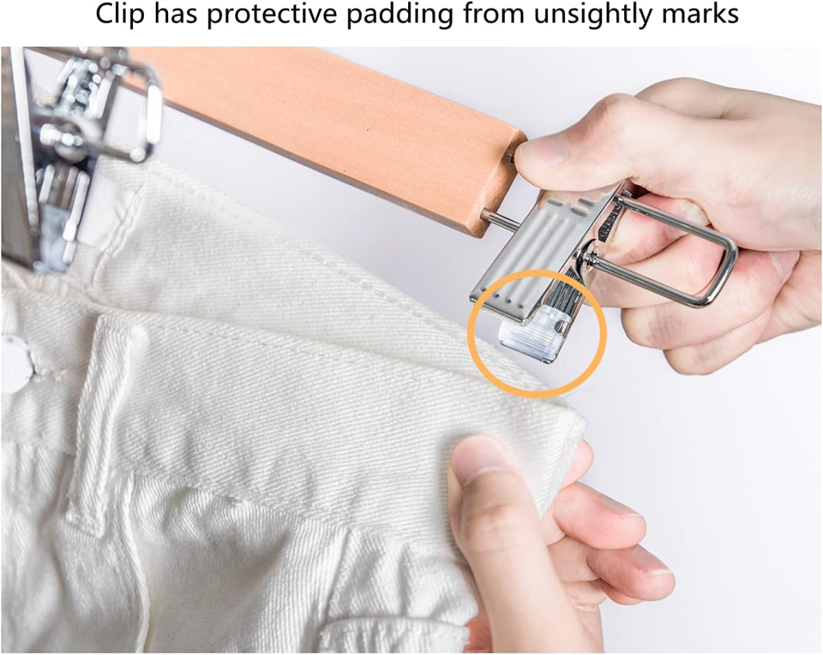 Versatilidad: Estas perchas son ideales para prendas de cualquier tamaño, desde faldas y pantalones cortos hasta jeans pesados.