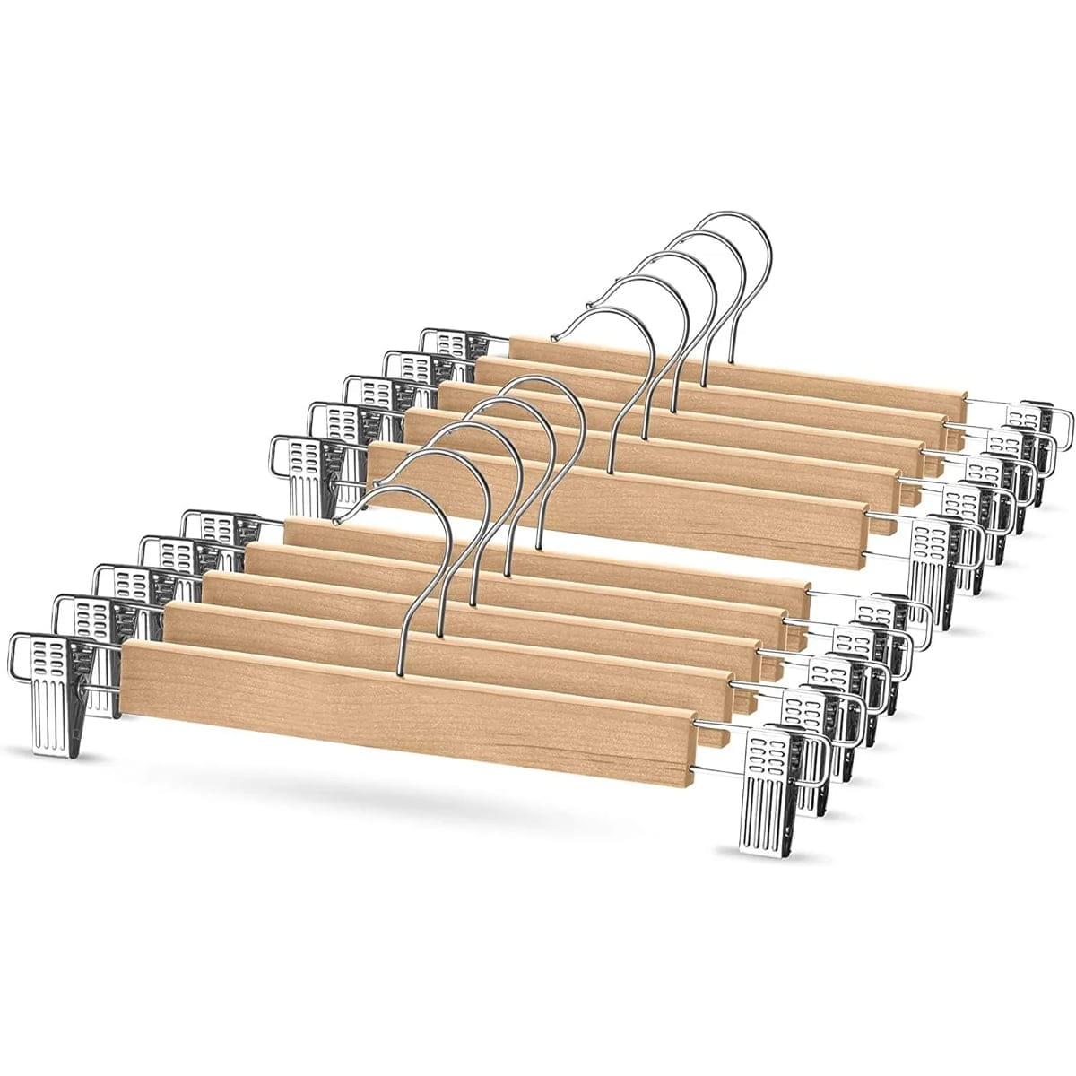 Materiales de alta calidad: Fabricadas con madera maciza resistente y ganchos de metal cromado antioxidante, estas perchas te garantizan una larga vida útil y un uso sin preocupaciones.