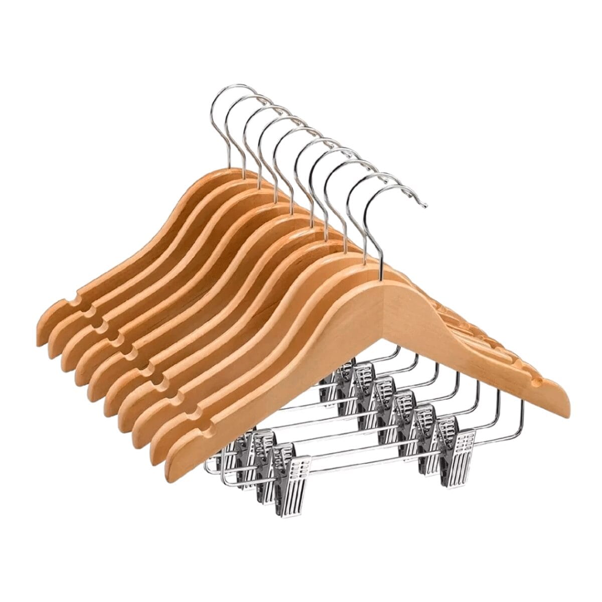 Diseño Impecable: La madera clara lustrada con una terminación brillante hace que estas perchas destaquen y luzcan impecables en cualquier armario.