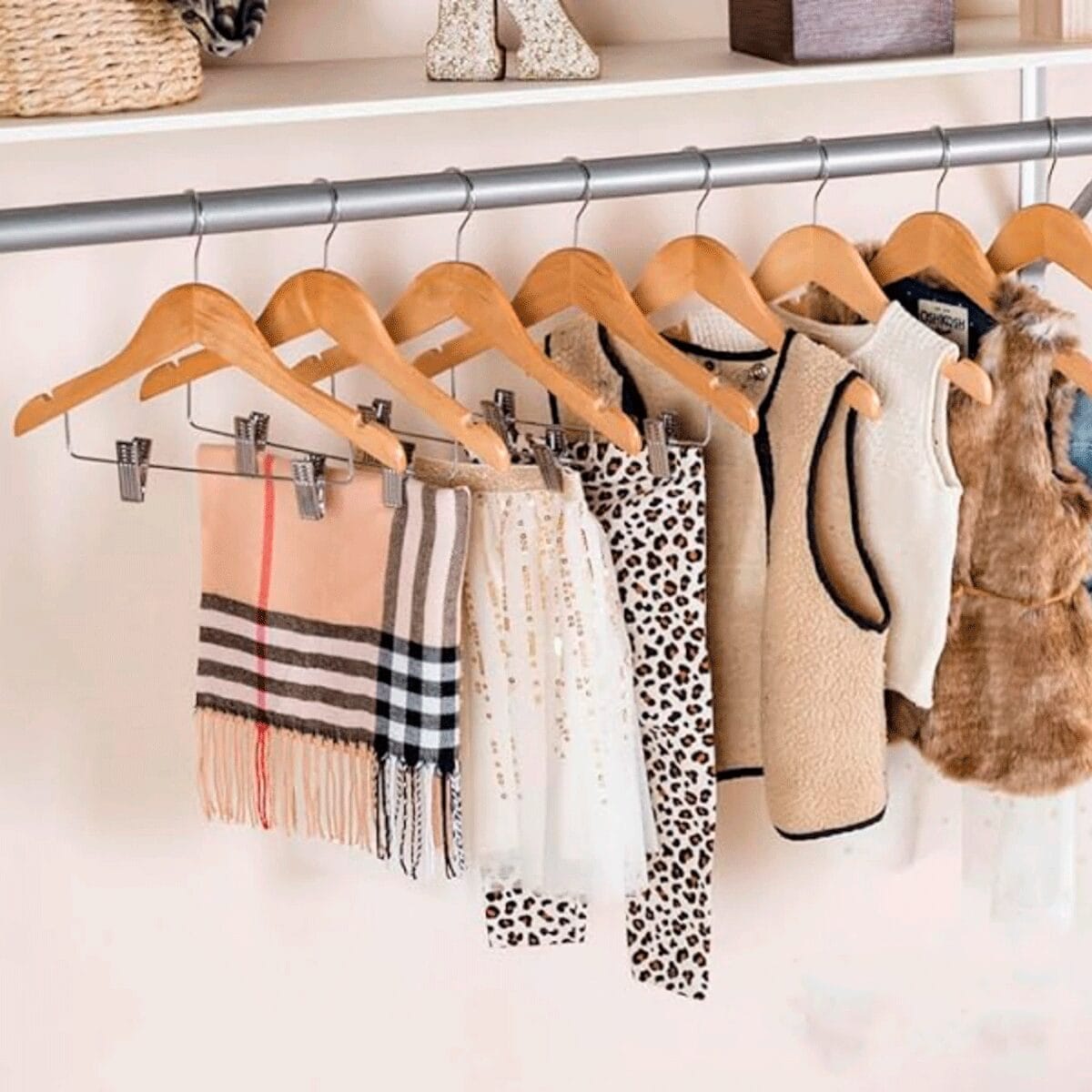 Con nuestras perchas de madera, podés mantener las prendas de tus peques en su mejor estado, ¡siempre organizadas y listas para usar!