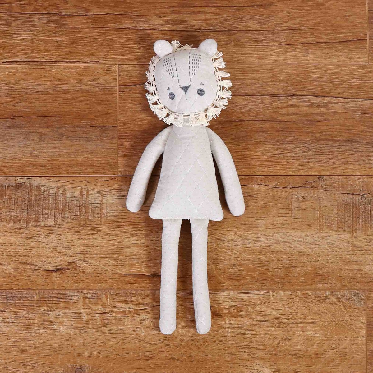 Tu bebé siempre se sentirá acompañado en sus siestas con el simpático monito de apego león beige con detalles de barbitas de hilaza de algodón formando la melena, 100% algodón de tela capitonada. Es flexible y abrazable ideal para acompañar tu bebé a la hora de dormir, dando una sensación de acompañamiento, confianza y protección. Además de ser un tierno compañero para tu bebé, es un artículo de decoración para la cuna o el cuarto de tu bebé.