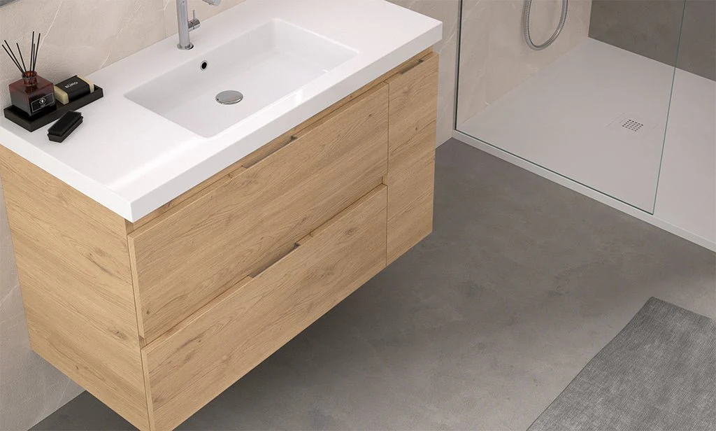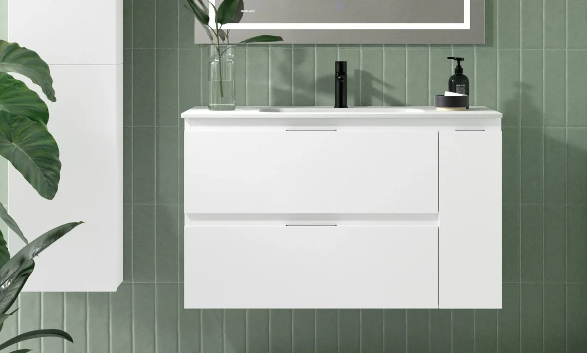 Kula es un mueble de baño de tipo melamina con diseño moderno y funcional.