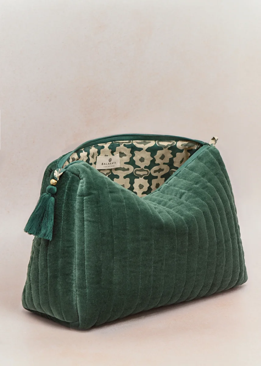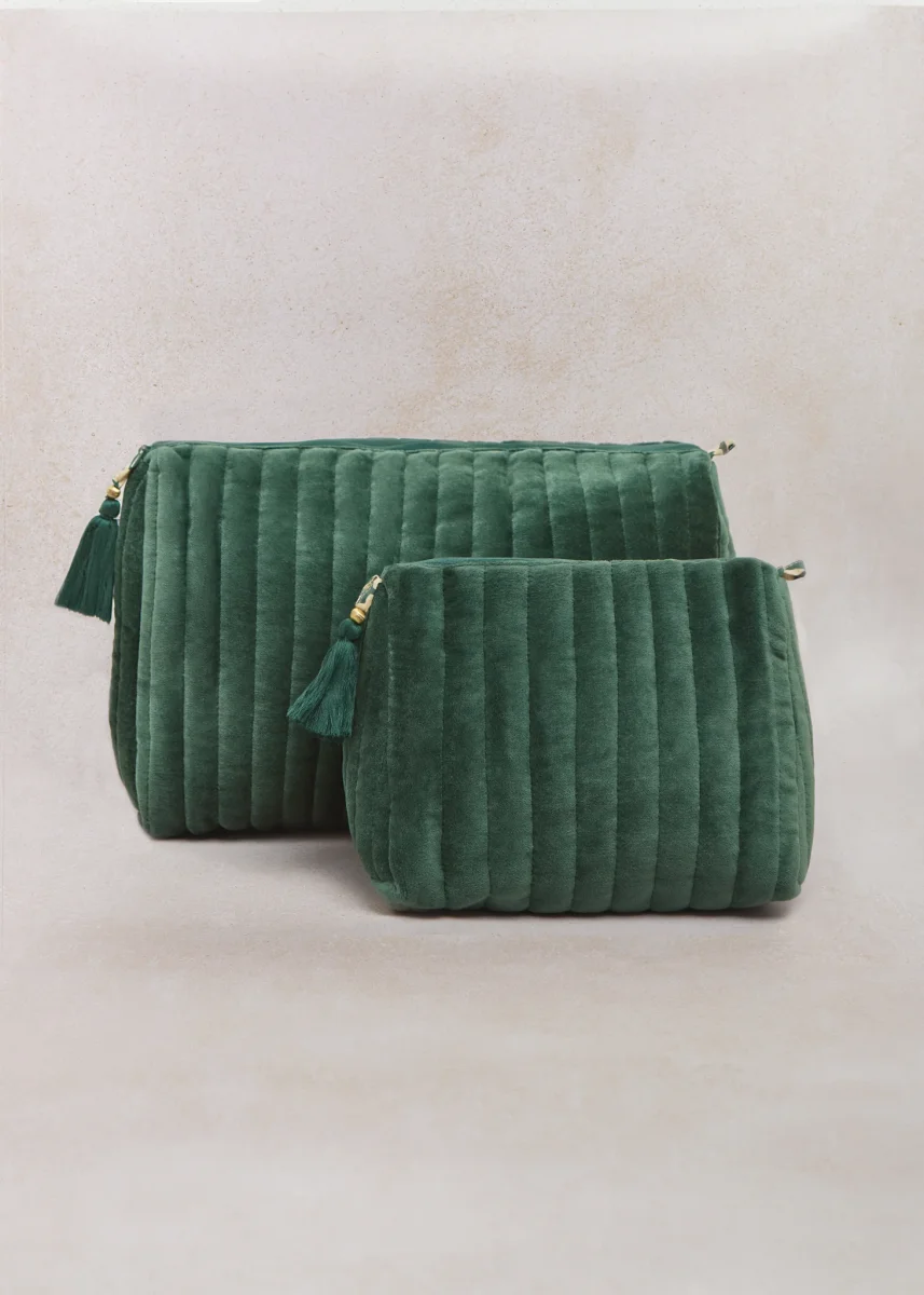 Neceser de terciopelo forrado por dentro y con cremallera.