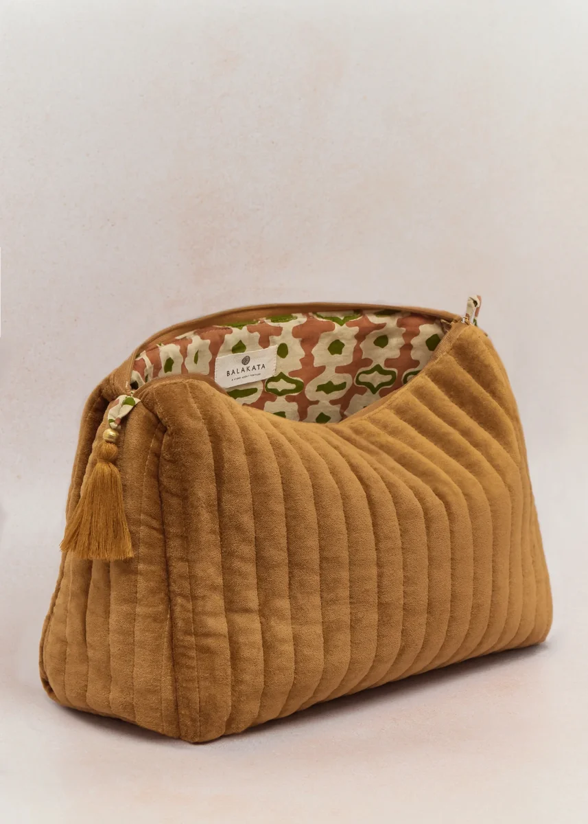 Neceser de terciopelo forrado por dentro y con cremallera.
