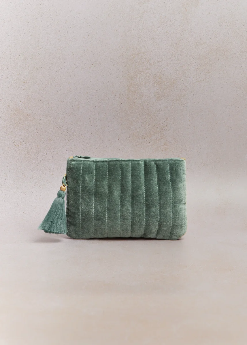Neceser de terciopelo forrado por dentro y con cremallera. Disponible en varios colores ¡No olvides de personalizar el tuyo con tus iniciales!