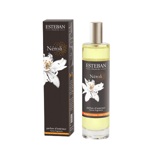 El perfume de ambiente Néroli de Esteban Paris, se presenta en una botella de vidrio reciclable en spray de 75 ml., lo que te permitirá perfumar cualquier estancia de tu hogar de manera fácil y rápida.