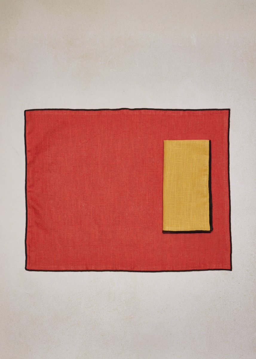 Pack de 4 individuales con borde negro de 100% lino.