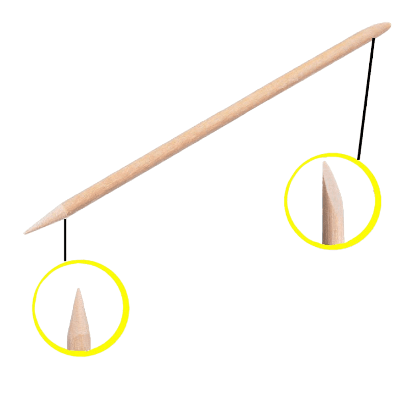 - Limpieza de uñas: Con la punta afilada del palito de madera, puedes eliminar suavemente la suciedad o el esmalte de uñas que se acumula en los bordes y las esquinas de las uñas.