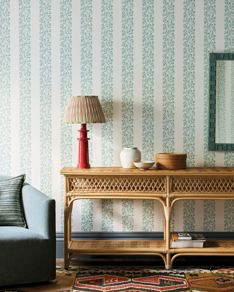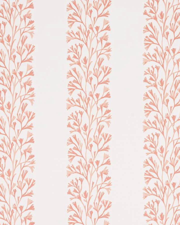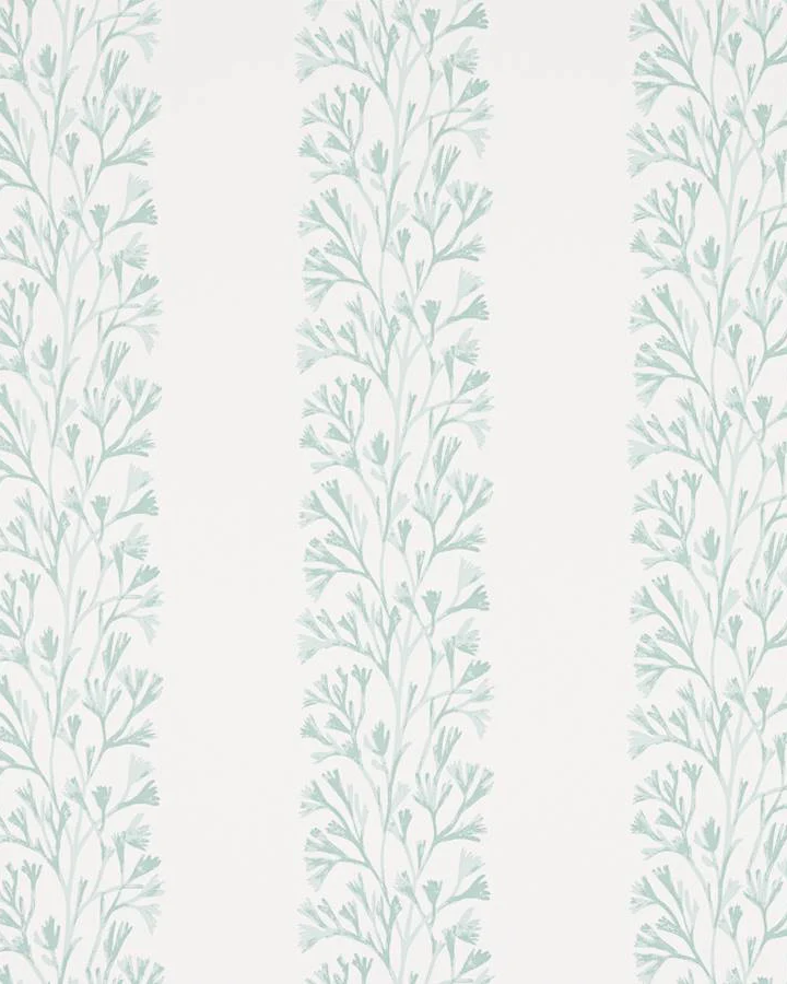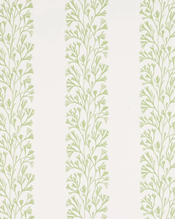 Este papel pintado presenta un patrón de rayas a modo de hojas sobre fondo blanco, aportando frescura y movimiento a cualquier pared. Su diseño elegante y natural encaja en espacios contemporáneos y clásicos, aportando un toque decorativo sin recargar la estancia.