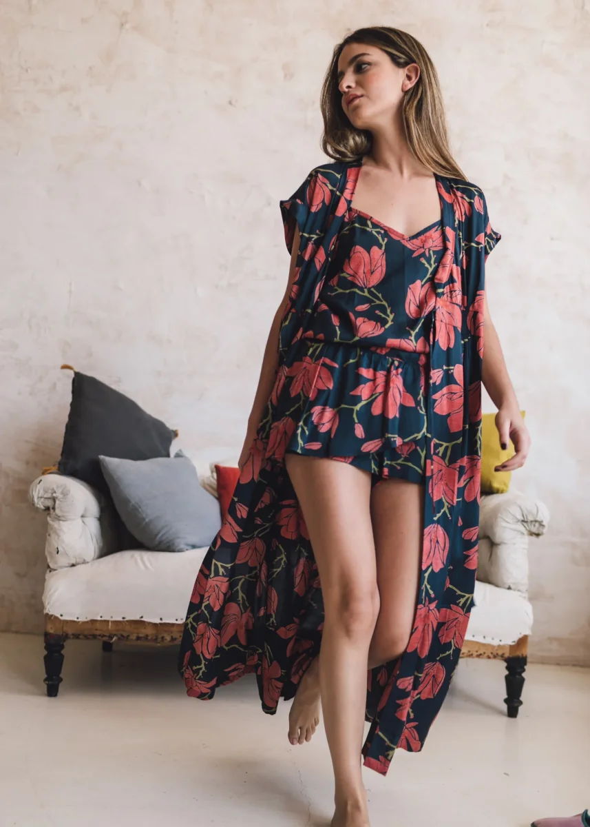 Destaca por su tejido de centón, estampados florales y las tonalidades de los tejidos.