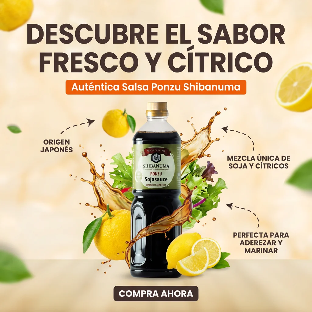 Descubre el sabor fresco y cítrico de la auténtica salsa Ponzu Shibanuma, una mezcla única de salsa de soja con el delicado toque de cítricos japoneses. Perfecta para aderezar y marinar platos, esta salsa es un imprescindible en la cocina japonesa, ideal para realzar el sabor de pescados, carnes, ensaladas y verduras.