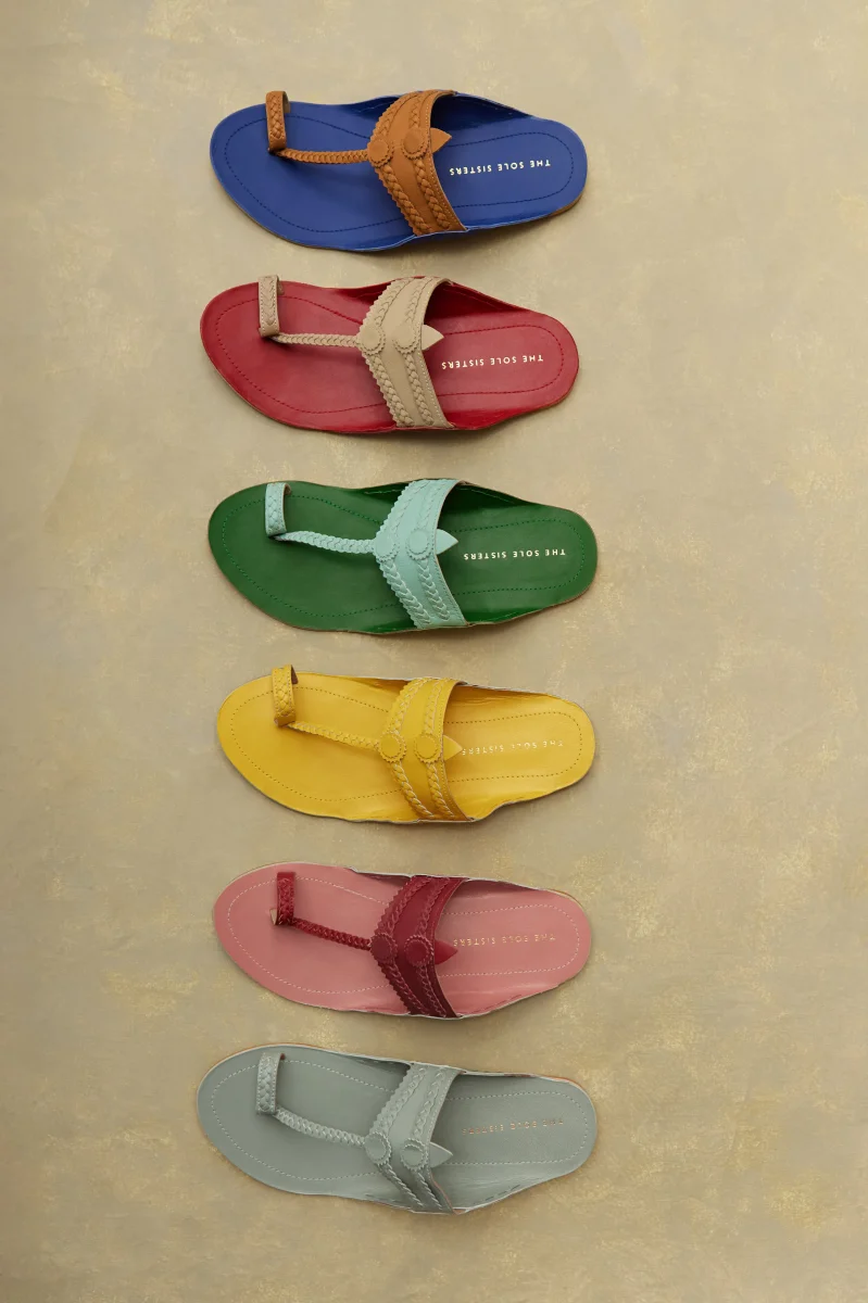 Esta sandalia plana de 100% cuero Kolhapuri de la India está hecha exclusivamente a mano por artesanos especializados en la India .