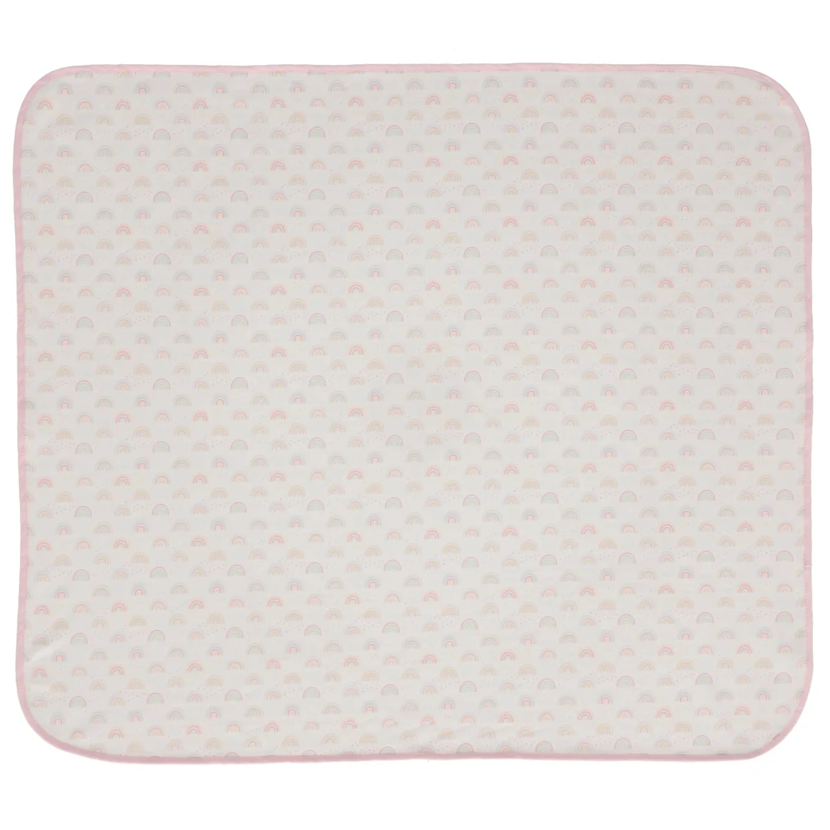 1. Frazada impresa con arcoíris rosas y mamey con toques de amarillo y verde menta, en tejido de punto de 90 x 76 cm. Ideal para cubrir a tu bebé del viento, sol y frío. Nuestra frazada es tela de polo térmica práctica y ligera. Funciona para cualquier época del año. Sirve para hacer taquito al bebé recién nacido, taparlo en el moisés, para el cunecho o para cuando sacas al bebé para el portabebé o carreola.