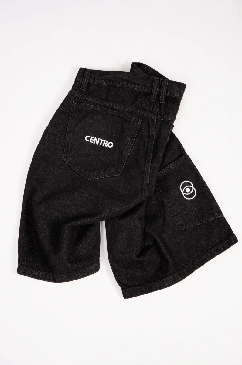 Short corto como negro , material jeans. 3 bordados.