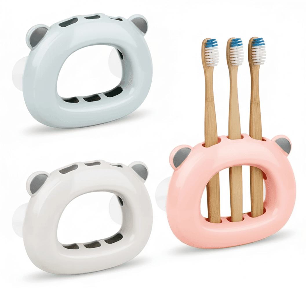 ¡Mantené el baño ordenado y divertido con este soporte infantil para cepillos de dientes! Con diseño de osito, compacto y fácil de instalar gracias a su ventosa de fuerte adherencia. Ideal para niños, fomenta hábitos de higiene de forma lúdica y segura.