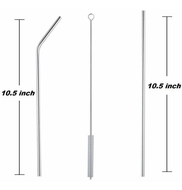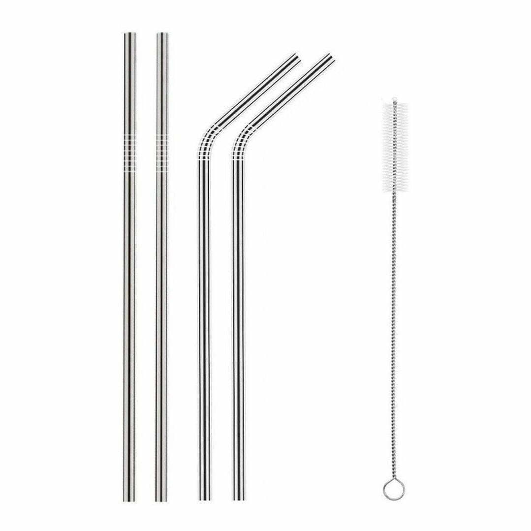 Sorbetes de Metal Pajita Reutilizable 4u Acero Inox Y Cepillo Reutilizar