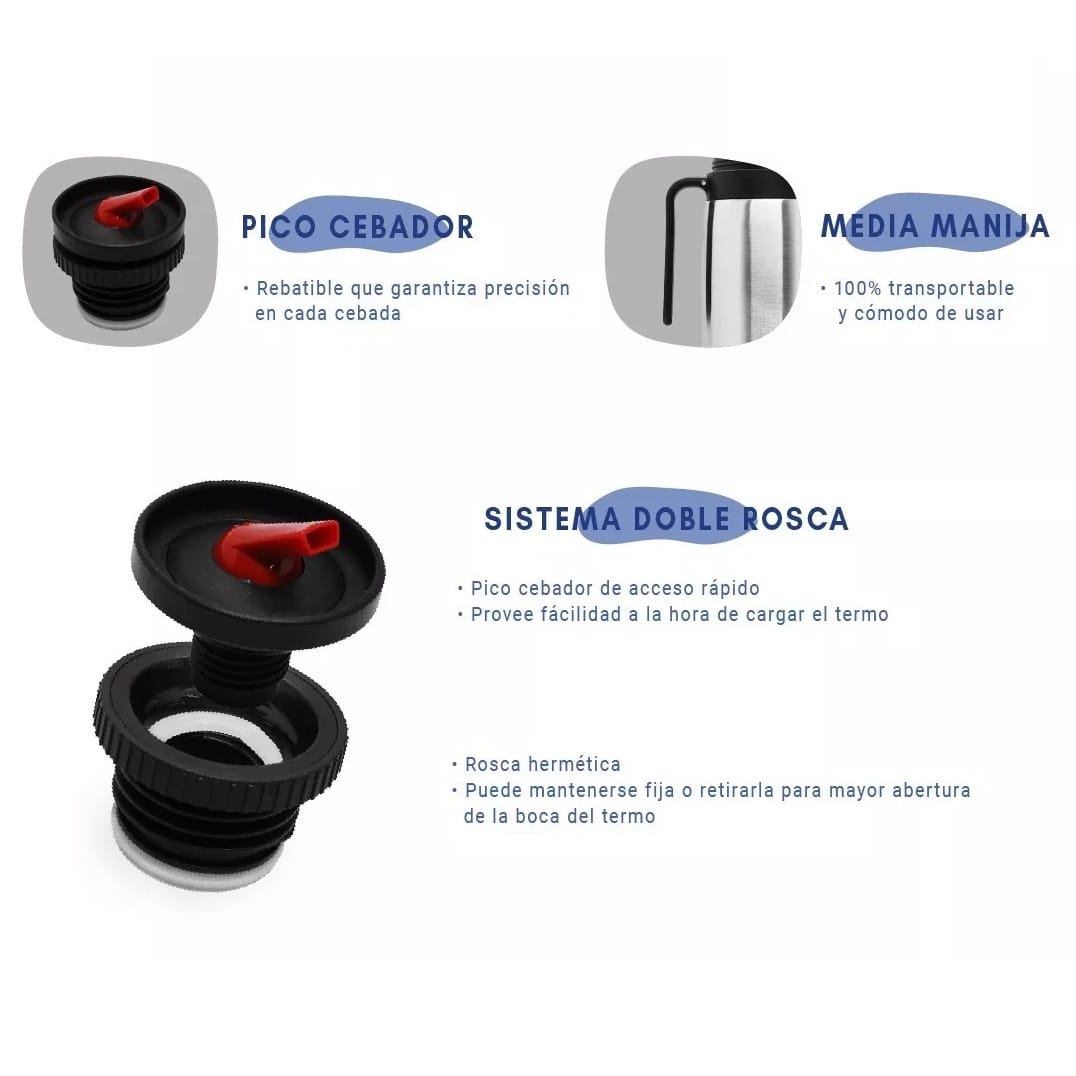 Diseñado pensando en los verdaderos amantes del mate, este termo combina la tradición argentina con tecnología moderna. Su construcción de primera calidad asegura años de uso confiable, mientras que su diseño elegante lo hace perfecto para cualquier ocasión.