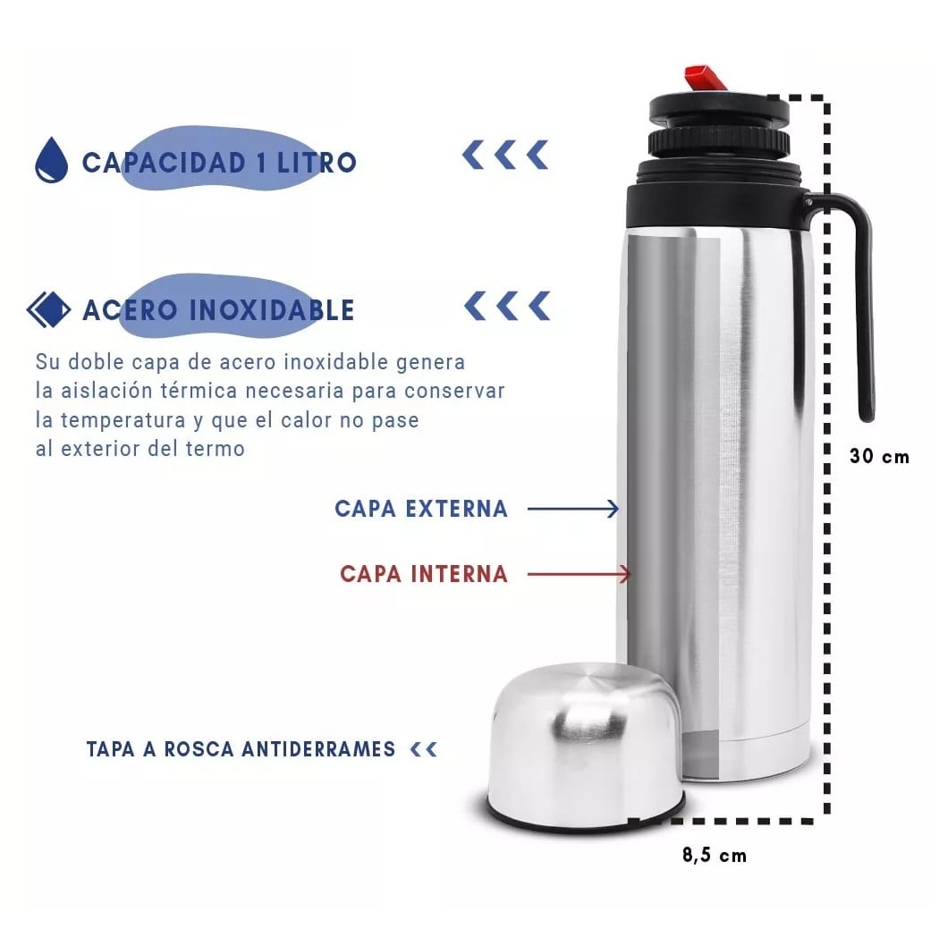- Capacidad Perfecta: 1 litro ideal para uso individual o compartir momentos con amigos