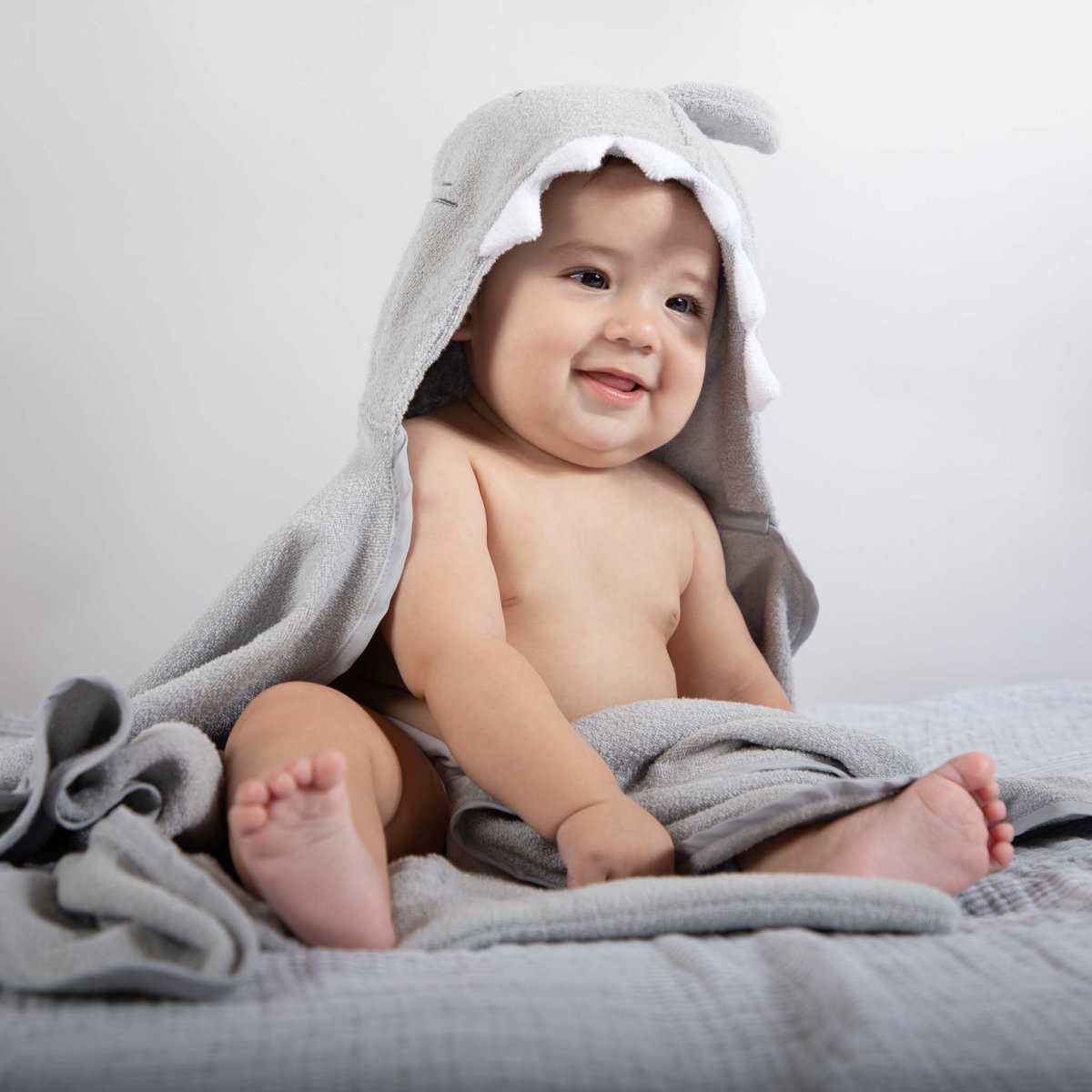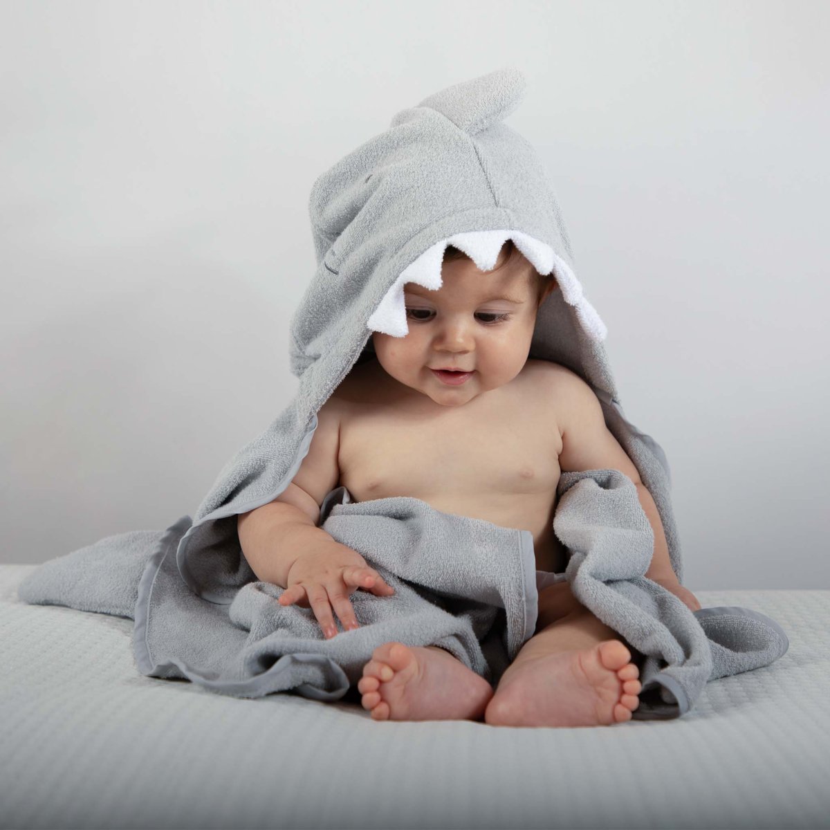 Dale un toque divertido a cada una de las duchas de tu bebé con nuestra toalla de baño para bebé, suave y de larga duración, 100% algodón, con diseño de tiburón gris con picos en la espalda y cola de tiburón gris. La capucha protege los oídos del bebé o niño del aire, al sacarlos del agua.
