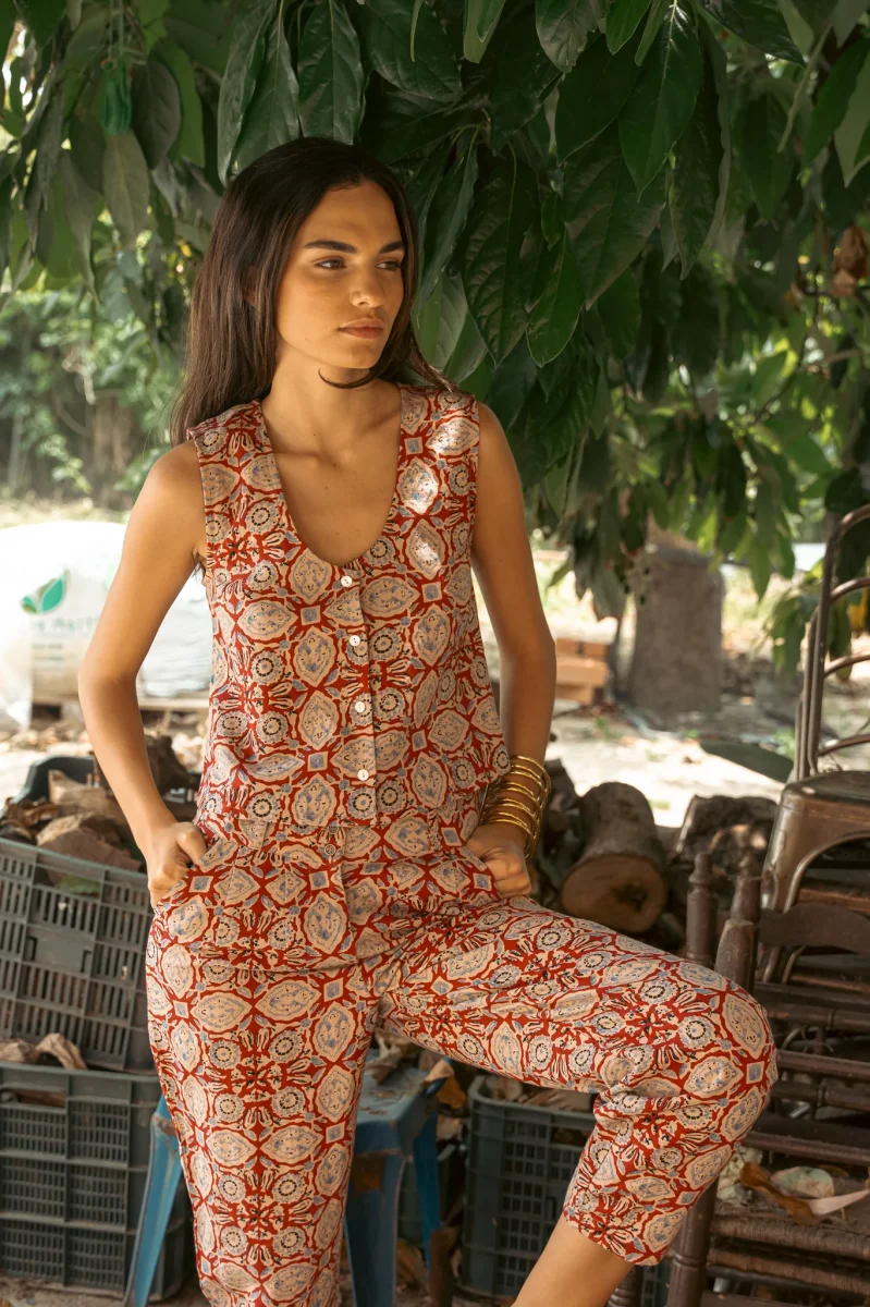 Top con cierre con botón con posibilidad de combinarlo con el pantalón a conjunto.
