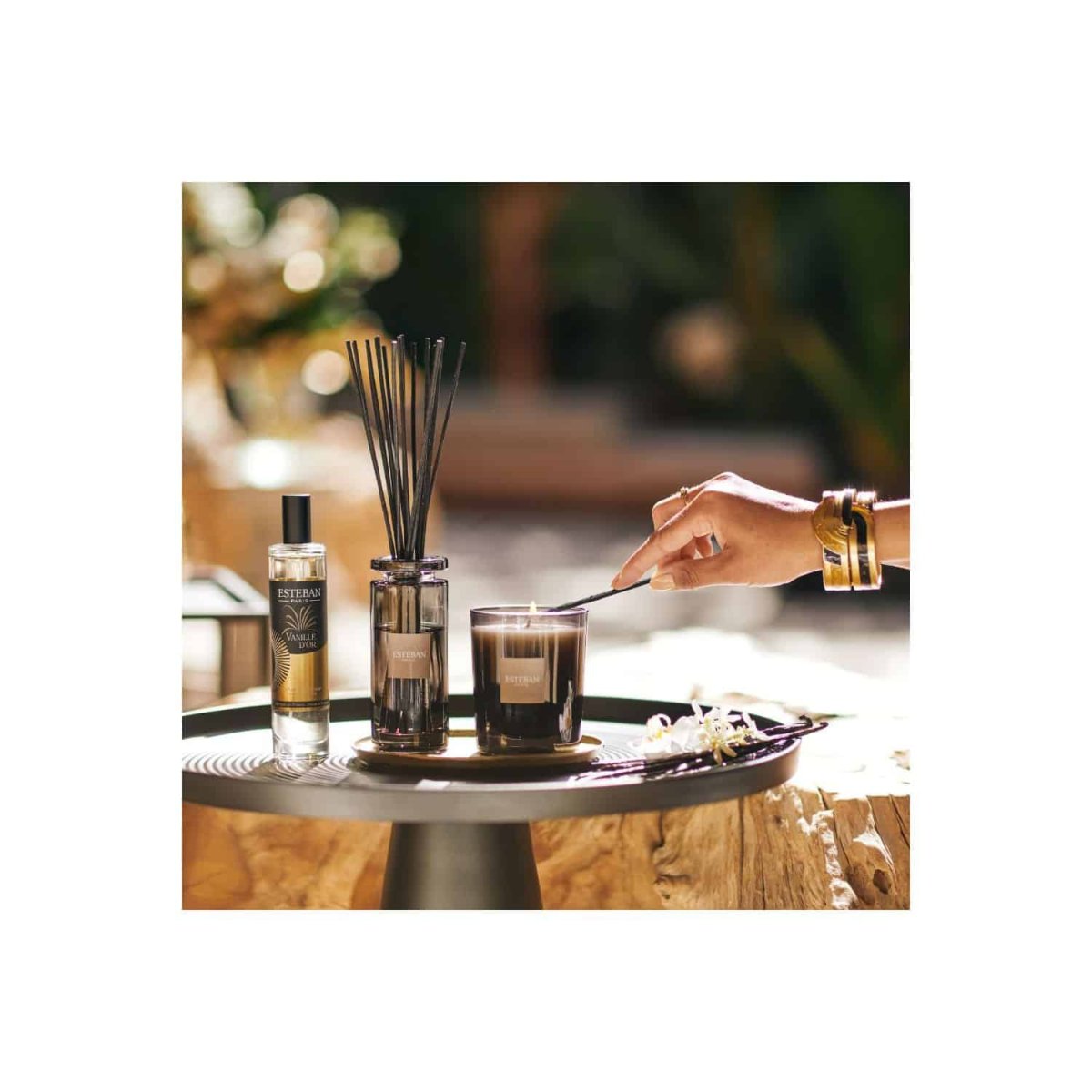 El mikado Vanille d’Or Inicial de Esteban Paris, que mezcla la vainilla y la naranja dulce, perfumará fácilmente tu hogar o lugar de trabajo aportando un toque decorativo.